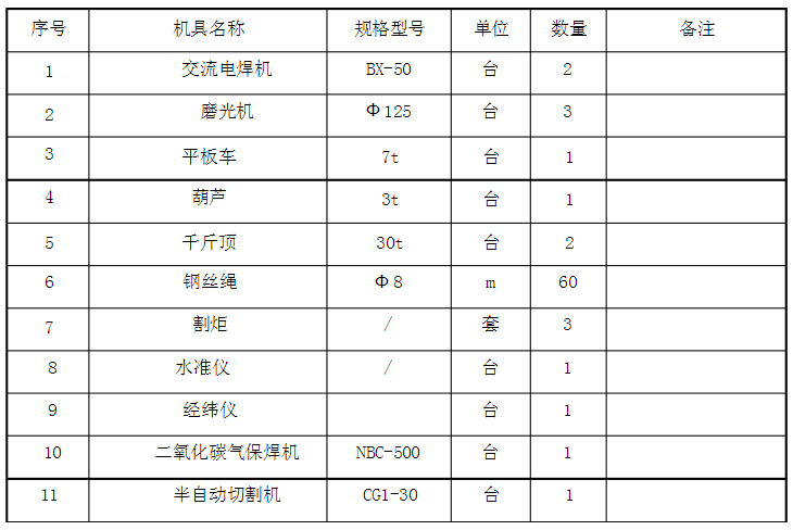 3、施工機具需用量計劃表,根據本工程實尿情況需用機機械設備如下表: